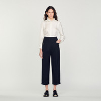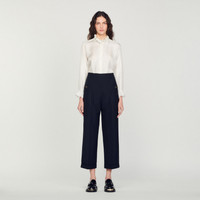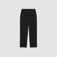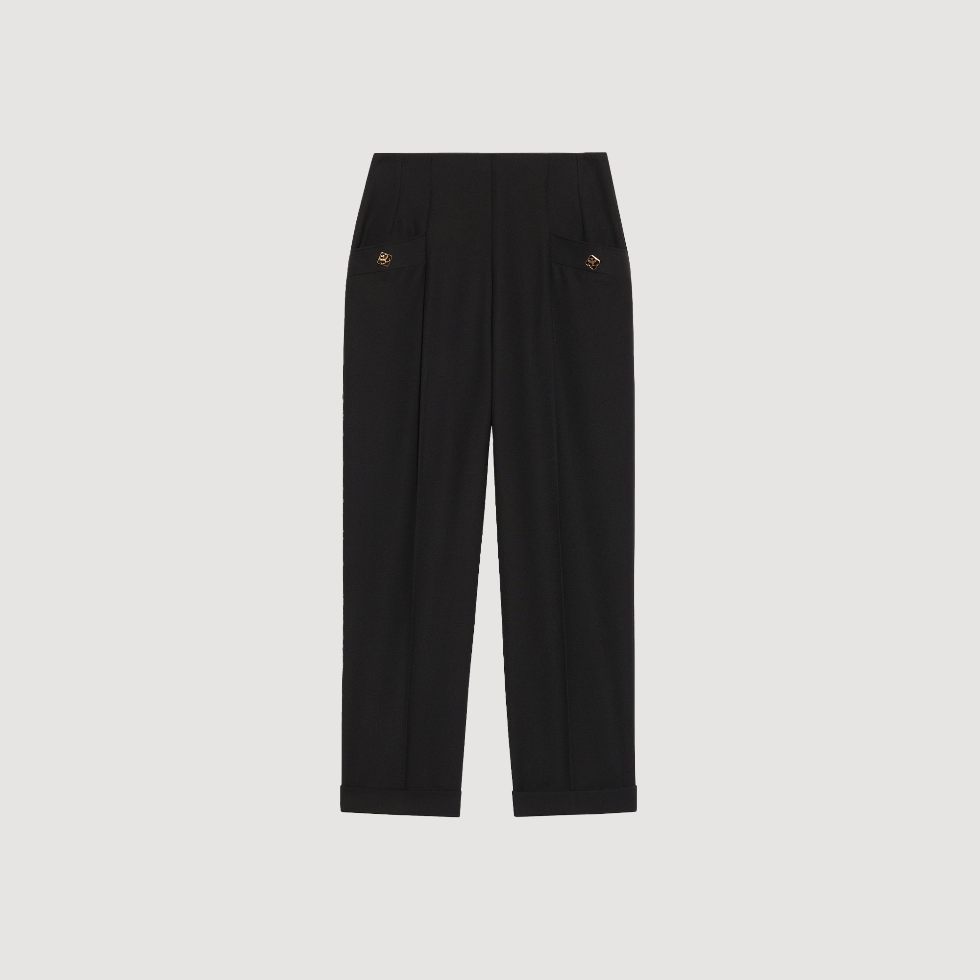 Sandro women's pants • Virgin wool pants • High waist • Side pockets with fancy double S buttons • Piped pockets at the back • Turn-ups at the hems • Concealed zip fastening at the center back • These pants match the jacket The model is 5'10" tall and wears a size 36 FR / 4 US. This item's main material is at least 50% recycled. Recycling reduces the environmental impact by limiting the use of virgin materials. Reference : SFPPA00797 MATERIALS Main fabric: 55% polyester, 45% virgin wool Belt lining: 100% cotton Pocket lining: 100% cotton