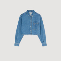 Oversized denim cropped shirt with long sleeves, classic collar, patch pockets on the chest and with tone-on-tone embroidery. - Sandro Women's denim shirt - Shirt collar - Long-sleeved with buttoned cuffs - Patch pocket on chest - Tone-on-tone embroidery - Oversized fit - True to size Reference: SFPCM01254_4785 COMPOSITION & CARE Composition - Main fabric: 100% cotton Care advice - Gentle cycle 30° - Do not bleach - Do not tumble dry - Iron at a maximum temperature of 110°C without steam - Do not dry clean