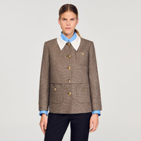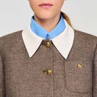 Reference: SFPVE01235_G023 COMPOSITION & CARE Composition - Main material: 60% virgin wool, 38% polyester, 2% elastane - Lining: 100% viscose - Removable collar: 100% viscose - Pocket lining: 100% cotton Care advice - Do not wash - Do not bleach - Do not tumble dry - Iron at a maximum temperature of 110°C without steam - F/ - Professional dry clean, with hydrocarbon solvent, gentle treatment