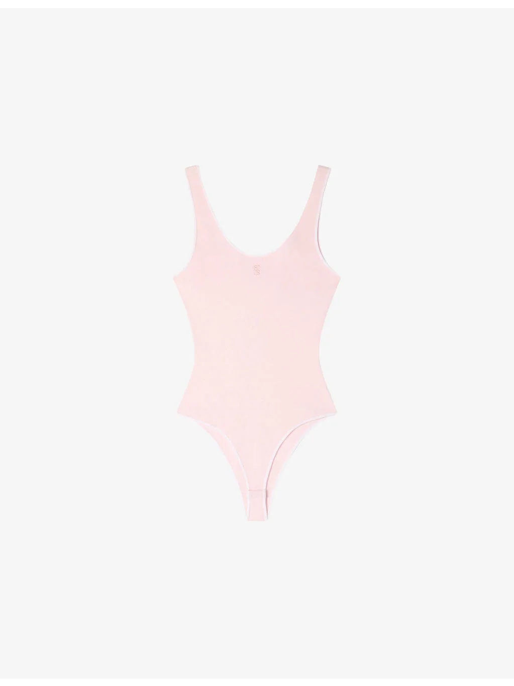 PRODUCT DETAILS - Sandro knitted bodysuit - 78% viscose, 22% polyester - Popper fastening - Slim fit, scoop neck, contrast trim, logo embroidery at the front - Dry clean - True to size - Model is 5ft 9in/1.75m and wears a size UK 8 - Lightweight, stretchy Ref: R04412315