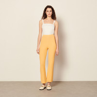Straight-cut, fancy-stitch knit trousers with elastic waistband. • Sandro Women's straight trousers • Slightly flared shape • Elasticated waistband This garment is made of eco-responsible viscose. Our designers chose this fiber derived from wood pulp because it guarantees sustainable forest management. Model is wearing a size S/UK 8/US 2-4 and measures 5'10" These trousers have a matching cardigan Reference : SFPPA00876 MATERIALS Main fabric: 54% viscose, 46% polyamide