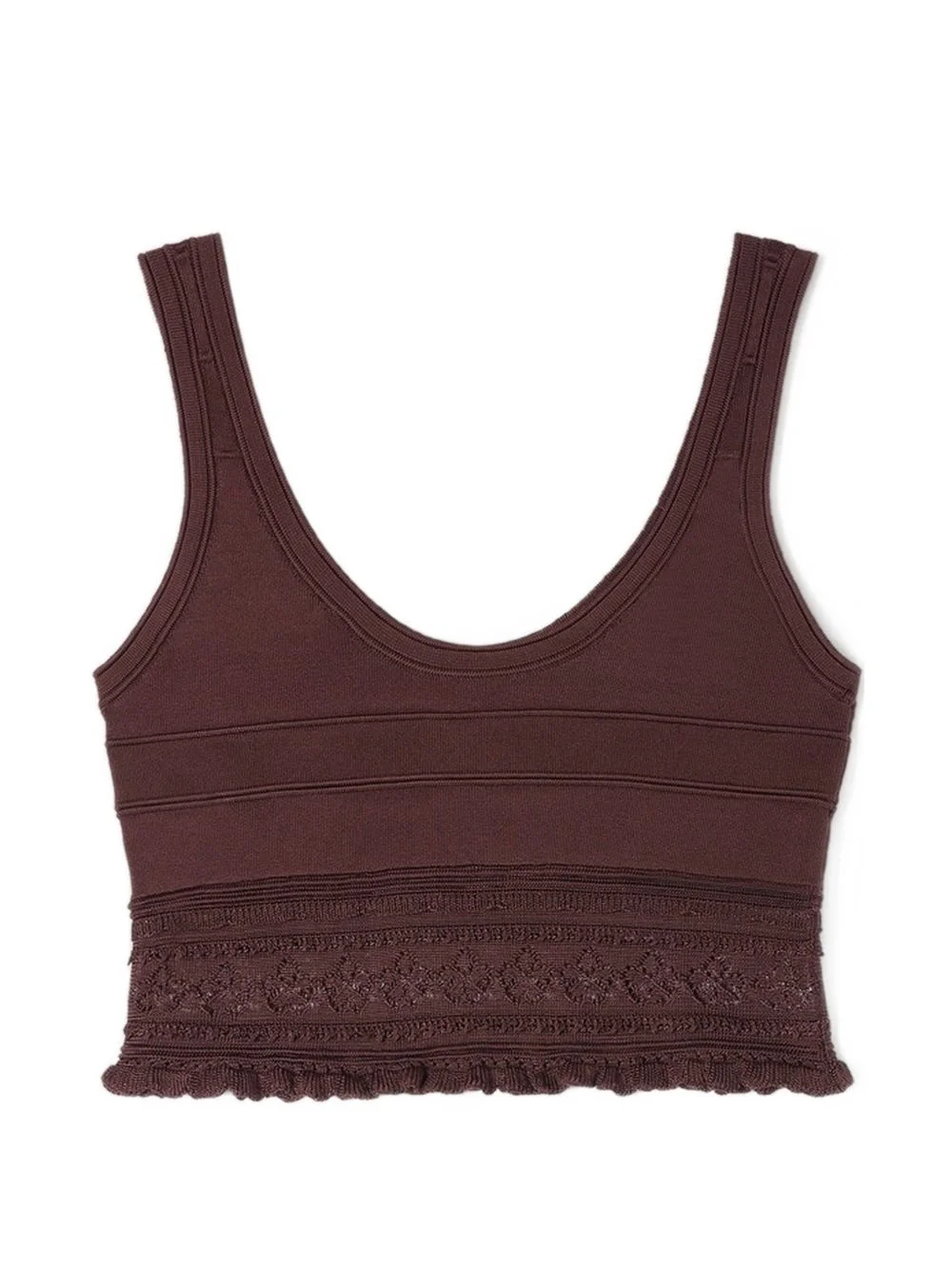 lace crop top Highlights - Brown - Lace trim - Cropped - Sleeveless - Round neck - Ribbed knit Imported Composition Viscose 82%, Polyamide 16%, Elastane 2% Washing instructions Hand Wash