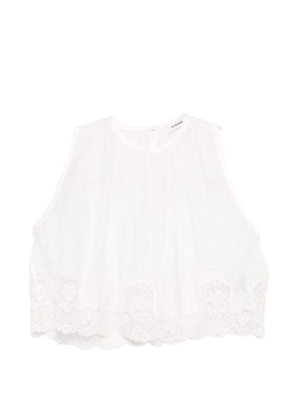 lace-hem blouse Highlights - White - Lace trim - Button fastening - Sleeveless Imported Composition Polyester 100%, Silk 100%, Viscose 73%, Polyamide 19%, Linen/Flax 8% Washing instructions Specialist Cleaning