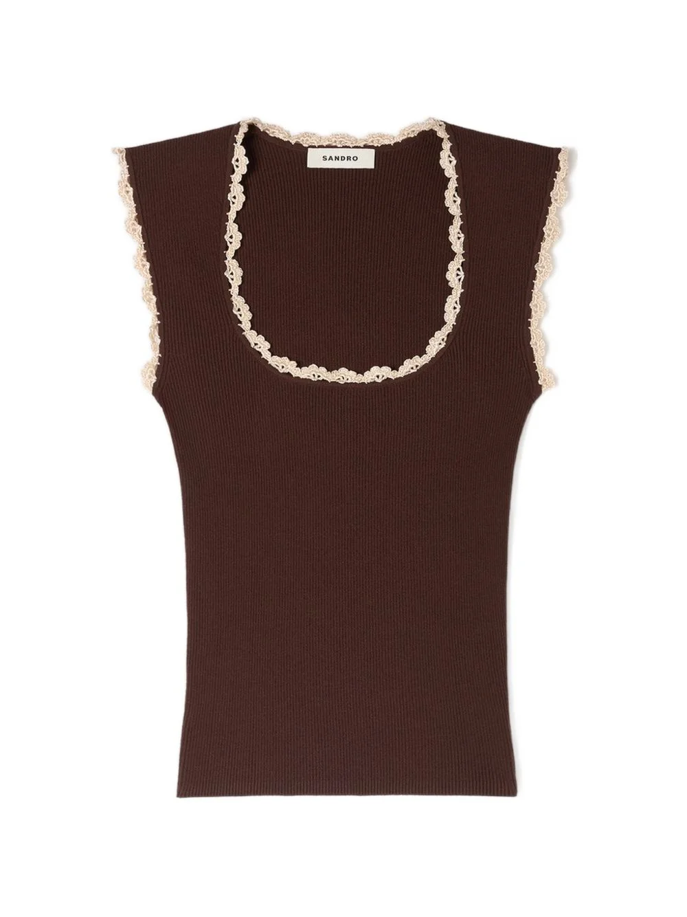 lace-trim top Highlights - Brown - Ribbed knit - Lace trim - Scoop neck - Sleeveless Imported Composition Viscose 84%, Polyester 16% Washing instructions Hand Wash