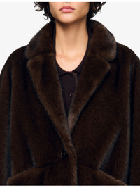 PRODUCT DETAILS - Sandro faux-fur coat - 100% polyester - Concealed button fastenings at front - Regular fit, lapel collar, long sleeves, two pockets at the front - Dry clean - True to size - Model is 5ft 9in/1.75m and wears a size UK 8 - Midweight, non-stretch Ref: R04501215