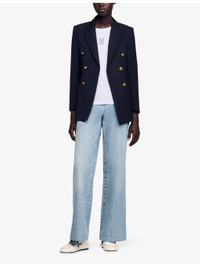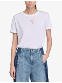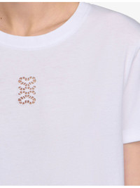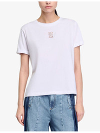 PRODUCT DETAILS - Sandro cotton-jersey T-shirt - 100% cotton - Regular fit, round neck, short sleeves, turn-up cuffs, logo embroidery at front - Machine wash at 30°C - True to size - Model is 5ft 10in/1.78m and wears a size UK 8 - Lightweight, non-stretch Ref: R04412202