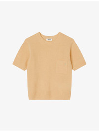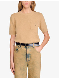 PRODUCT DETAILS - Sandro wool jumper - 100% wool - Regular fit, round neck, patch pocket at chest with logo embroidery, short sleeves - Hand wash - True to size - Model is 5ft 9in/1.75m and wears a size UK 8 - Midweight, non-stretch Ref: R04501179