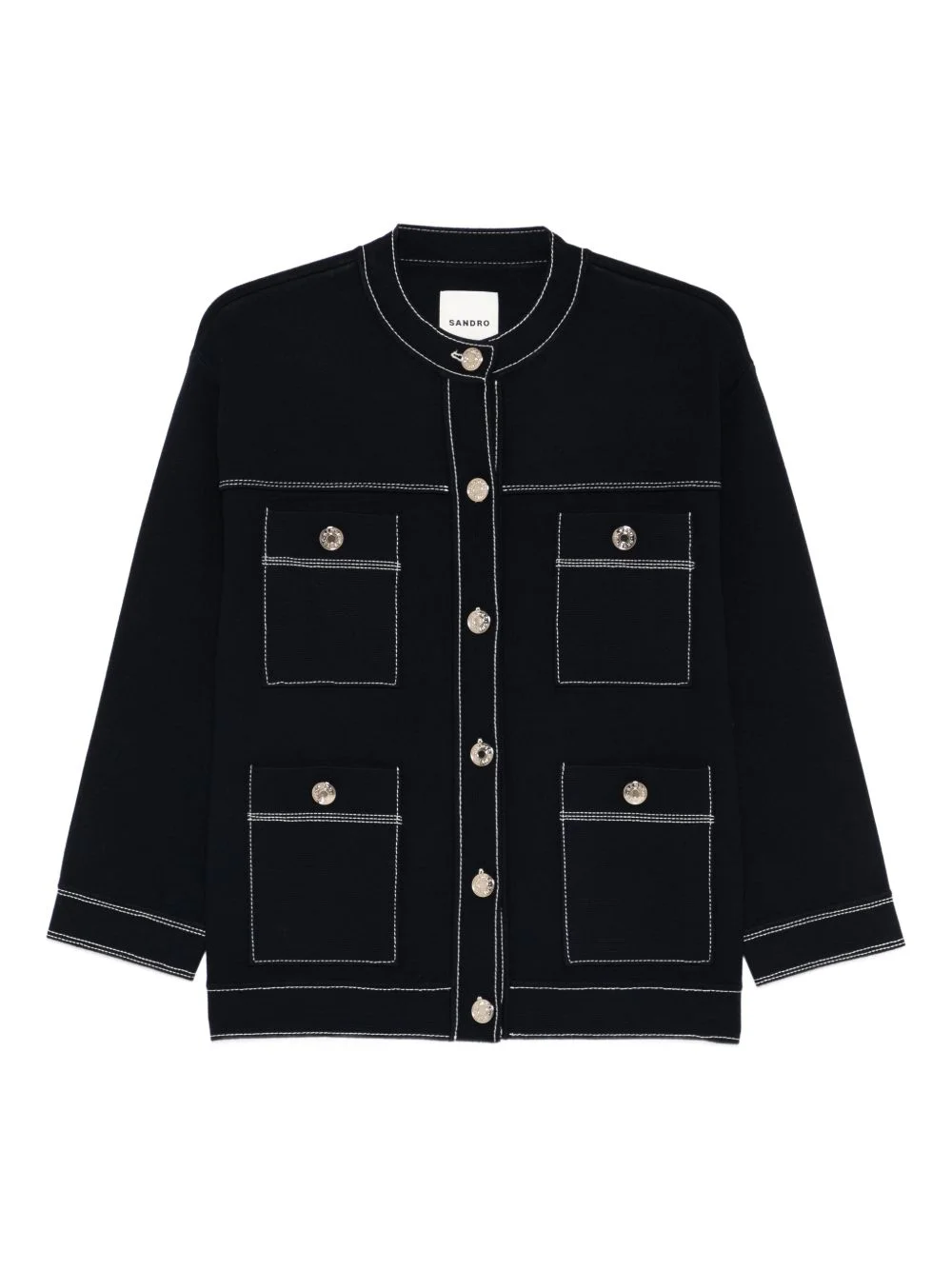 long-sleeve cardigan Highlights - Navy blue - Topstitching - Long sleeves - Buttoned front - Four patch pockets - Buttoned pockets Imported Composition Outer: Viscose 60%, Polyester 25%, Polyamide 15% Lining: Viscose 70%, Polyester 30% Washing instructions Hand Wash
