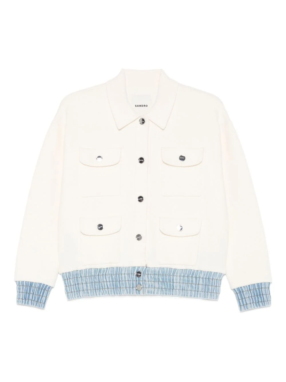 long-sleeve cardigan Highlights - Beige - Shirt collar - Button fastening - Long sleeves - Flap pockets - Smocked denim trims Imported Composition Polyamide 41%, Viscose 36%, Cotton 23% Washing instructions Hand Wash