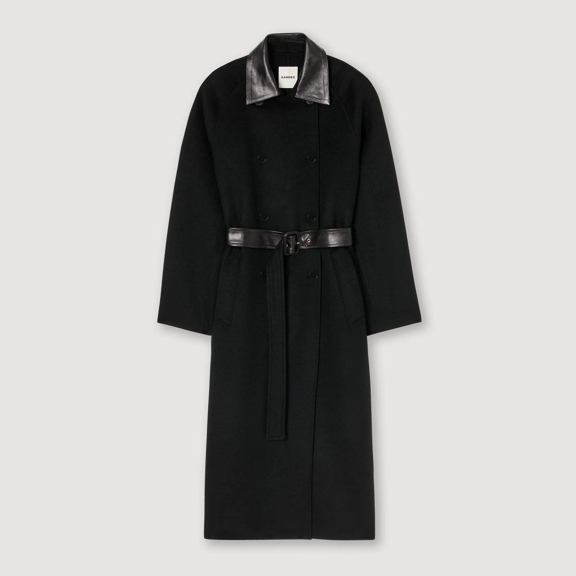 LONG WOOL AND LEATHER COAT