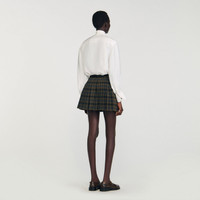 Mini pleated skirt with contrasting checks and leather strap detail with buckle. - Sandro Women's mini pleated skirt - Check pattern - Combination of two checks - Leather strap detail - Zip fastening at the back - Designed for a flared fit Reference: SFPJU01559_E188 COMPOSITION & CARE Composition - Main material: 66% polyester, 32% viscose, 2% elastane - Secondary material: 77% polyester, 16% viscose, 7% elastane Care advice - Hand wash - Do not bleach - Do not tumble dry - Iron at a maximum temperature of 110°C without steam - F/ - Professional dry clean, with hydrocarbon solvent, gentle treatment
