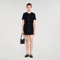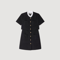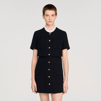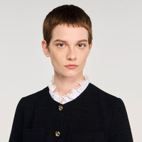 Reference: SFPRO04617_20 COMPOSITION & CARE Composition - Main material: 49% cotton, 25% viscose, 20% acrylic, 6% polyamide - Lining: 100% polyester - Fusible interfacing: 100% polyester - Lace band: 100% polyester - Buttons: 100% nacre - Removable collar: 100% cotton Care advice - Do not wash - Do not bleach - Do not tumble dry - Iron at a maximum temperature of 110°C without steam - F/ - Professional dry clean, with hydrocarbon solvent, gentle treatment