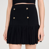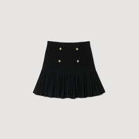 Mini knit skirt with double-breasted detailing and a ruffle at the bottom. - Sandro Women's mini skirt - Fine knit - Ruffle at the bottom - Double-breasted - Designed for a cinched fit Reference: SFPJU01504_20 COMPOSITION & CARE Composition - Main fabric: 54% viscose, 44% polyamide, 2% elastane - Secondary fabric: 55% viscose, 44% polyamide, 1% elastane Care advice - Hand wash - Do not bleach - Do not tumble dry - Iron at a maximum temperature of 110°C without steam - F - Professional dry clean, with hydrocarbon solvent, normal treatment