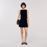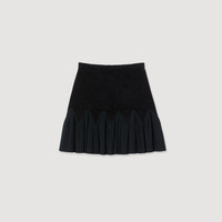 Mini velvet knit skirt with contrasting ruffled panels at the bottom. - Sandro Women's mini skirt - Contrasting ruffles - High waist - Designed for a flared fit Reference: SFPJU01553_20 COMPOSITION & CARE Composition - Main fabric: 57% polyamide, 39% viscose, 3% polyester, 1% elastane - Ruffle: 56% viscose, 35% polyamide, 8% polyester, 1% elastane - Band: 54% polyamide, 45% viscose, 1% elastane Care advice - Hand wash - Do not bleach - Do not tumble dry - Iron at a maximum temperature of 110°C without steam - F - Professional dry clean, with hydrocarbon solvent, normal treatment