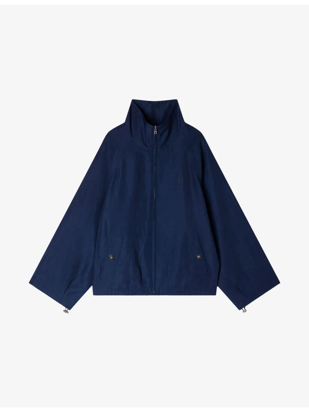 PRODUCT DETAILS - Sandro woven jacket - 73% viscose, 27% linen - Zip fastening - Oversized fit, stand-up collar, long sleeves, brand embroidery to chest, side pockets - Dry clean - True to size - Model is 5ft 11in/1.80m and wears a size UK 8 - Lightweight, non-stretch Ref: R04578779