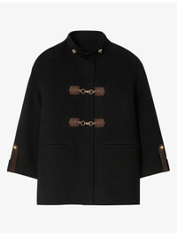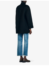 PRODUCT DETAILS - SANDRO wool pea coat - 100% wool - Hook fastening at front - Oversized, funnel neck, long cropped sleeves, two welt pockets at front, buckle fastening detailing - Dry clean - True to size - Model is 5ft 9in/1.75m and wears a size UK 8 - Midweight, non-stretch Ref: R04501242