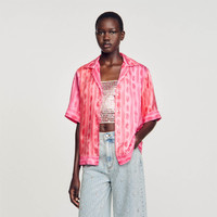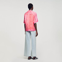 Floaty shirt with a paisley print, lapel shirt collar and short sleeves. Sandro Women's floaty shirt "Faded Paisley" print Lapel shirt collar Short sleeves The model is 180 cm / 5'11 tall and wears a size 1 FR / 4 US COMPOSITION Main fabric: 100% silk Buttons: 100% nacre Reference: SFPCM01105_651