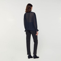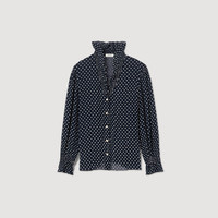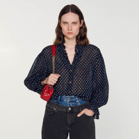 Floaty blouse in polka-dot patterned voile with long sleeves and smocked, ruffled details at the neckline and cuffs. Sandro Women's floaty blouse Ruffles on collar and cuffs Sandro logo buttons The model is 178 cm / 5'10" tall and wears a size 1 FR / 8 UK The model is 179 cm / 5'10 tall and wears a size 1 FR / 8 UK COMPOSITION Main fabric: 91% polyester, 9% viscose Reference: SFPCM01002_D176