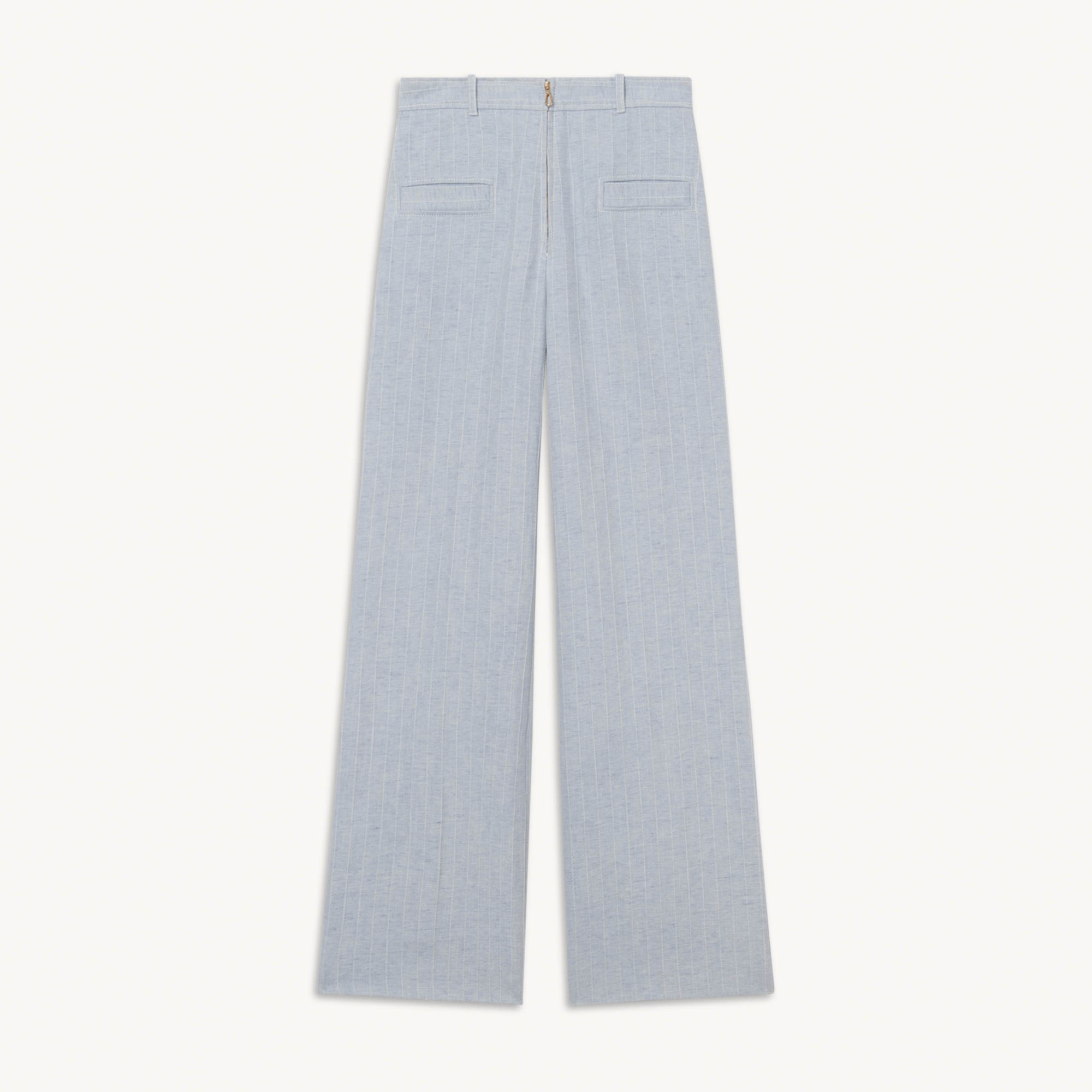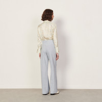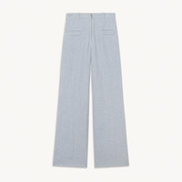 Sandro women's trousers • Pinstripe trousers • High waist with five belt loops • Zip at the center front • Two piped pockets at the front • Iron pressed pleats at the center front and back • Straight cut, slightly loose fit • Model is wearing a size 36/UK 8/US 2-4 and is 5'7" Reference : SFPPA00852 MATERIALS Main fabric: 70% cotton, 30% linen Pocket lining: 100% cotton