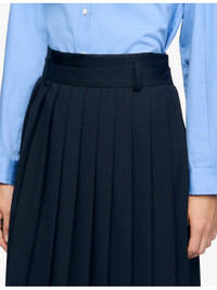 Pleated High-Rise Stretch Wool-Blend Midi Skirt