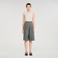Long, wide pleated shorts with a smocked elasticated waistband. - Sandro Women's pleated shorts - Mid-rise waist - Flared cut - Zip fastening with hook and button - Designed for a flared fit Reference: SFPSH00512_24 COMPOSITION & CARE Composition - Main material: 54% polyester, 44% virgin wool, 2% elastane Care advice - Regular cycle 30° - Do not bleach - Do not tumble dry - Iron at a maximum temperature of 110°C without steam - F/ - Professional dry clean, with hydrocarbon solvent, gentle treatment
