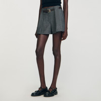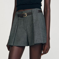 Pleated shorts with a leather belt at the waist. - Sandro Women's shorts - Removable leather belt - Zip fastening - Side seam pockets - Welt pockets on back - Designed for a flared fit Reference: SFPSH00509_27 COMPOSITION & CARE Composition - Main material: 52% polyester, 26% wool, 18% viscose, 4% elastane - Belt: calfskin split leather - Pocket lining: 100% cotton Care advice - Do not wash - Do not bleach - Do not tumble dry - Iron at a maximum temperature of 110°C without steam - F/ - Professional dry clean, with hydrocarbon solvent, gentle treatment
