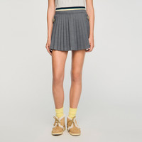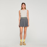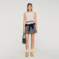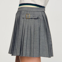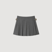Virgin wool skort with pleats, featuring metal buckles on the sides and a back zip fastening. - Sandro Women's wool skort - High waist - Flared cut - Metal buckle on the side - Back zip fastening - Designed for a flared fit Reference: SFPSH00522_24 COMPOSITION & CARE Composition - Main material: 54% polyester, 44% virgin wool, 2% elastane Care advice - Do not wash - Do not bleach - Do not tumble dry - Iron at a maximum temperature of 110°C without steam - F/ - Professional dry clean, with hydrocarbon solvent, gentle treatment