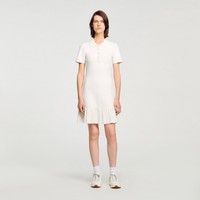 Mini knit dress with short sleeves, buttoned polo collar, and pleated skirt. - Sandro Women's mini knit dress - Polo collar - Short sleeves - Pleated ruffled skirt - 4S tags on the chest - Designed for a slim fit Reference: SFPRO04459_11 COMPOSITION & CARE Composition - Main fabric: 51% viscose, 47% polyamide, 2% elastane - Ruffle: 56% polyamide, 44% viscose Care advice - Hand wash - Do not bleach - Do not tumble dry - Iron at a maximum temperature of 110°C without steam - F - Professional dry clean, with hydrocarbon solvent, normal treatment