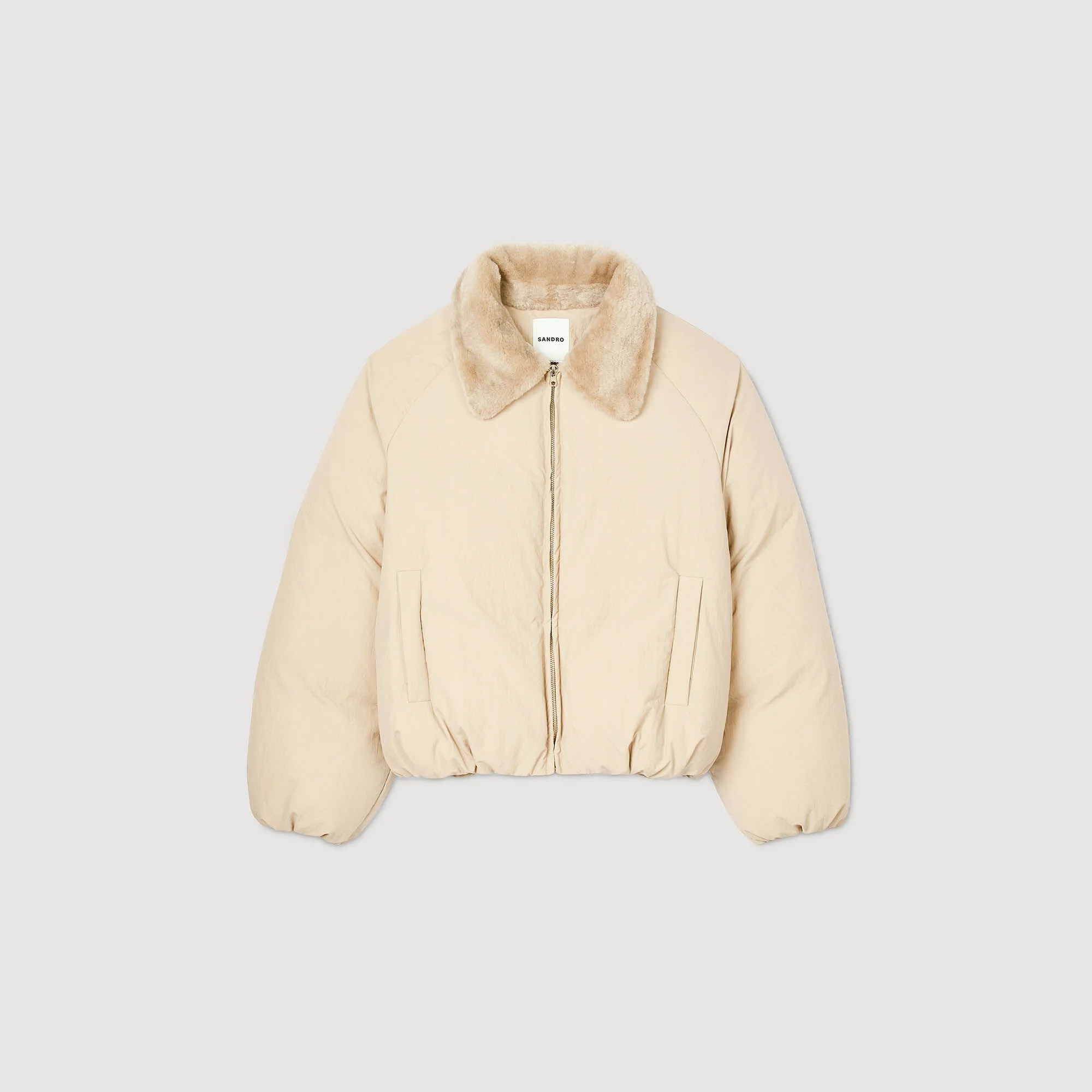 Reference: SFPOU00744_16 COMPOSITION & CARE Composition - Main material: 100% polyamide - Lining: 55% polyester, 45% viscose - Collar: 100% polyester - Padding: 100% polyester Care advice - Do not wash - Do not bleach - Do not tumble dry - Iron at a maximum temperature of 110°C without steam - F/ - Professional dry clean, with hydrocarbon solvent, gentle treatment