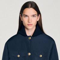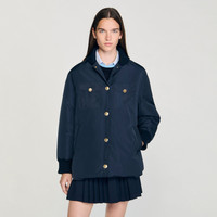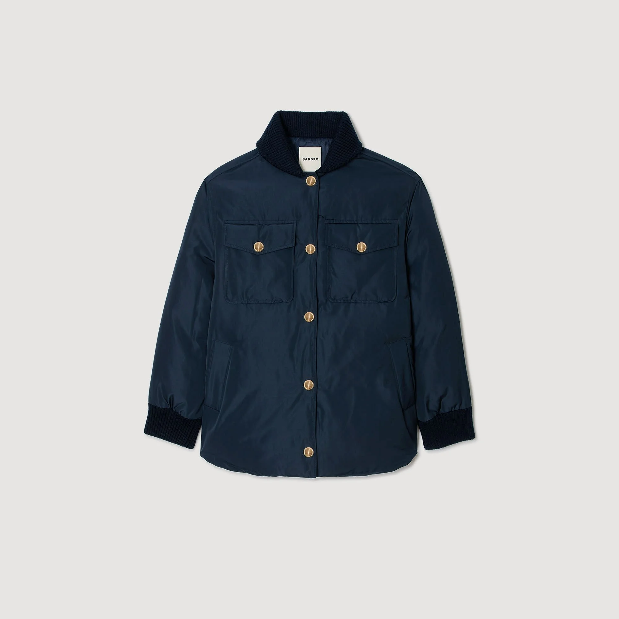 Reference: SFPOU00722_44 COMPOSITION & CARE Composition - Main material: 100% polyester - Body lining: 55% polyester, 45% viscose - Padding: 100% polyester - Rib: 58% acrylic, 25% wool, 15% polyester, 2% elastane Care advice - Do not wash - Do not bleach - Do not tumble dry - Iron at a maximum temperature of 110°C without steam - F/ - Professional dry clean, with hydrocarbon solvent, gentle treatment