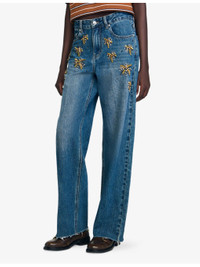 Rhinestone-Embellished Mid-Rise Jeans