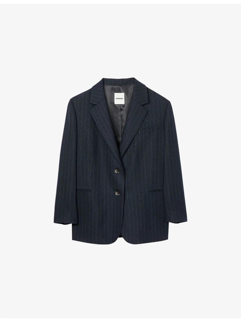 PRODUCT DETAILS - Sandro stretch-wool blazer - 40% wool, 29% polyester, 28% viscose, 3% elastane - Exposed button fastening at front - Relaxed fit, lapel collar, long sleeves, all-over rhinestone embellishment and stripes, two pockets at the side, single breasted - Dry clean - True to size - Model is 5ft 9in/1.75m and wears a size UK 8 - Lightweight, slight-stretch Ref: R04501150