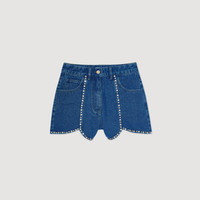 Faded effect denim shorts with a scalloped tulip hem and rhinestone lines. - Sandro Women's denim shorts - Rhinestones - High waist - Flared cut - Belt loops - Button and zip fly - Tulip hem - Designed for a flared fit Reference: SFPSH00533_4785 COMPOSITION & CARE Composition - Main material: 100% cotton - Pocket lining: 80% polyester, 20% cotton Care advice - Gentle cycle 30° - Do not bleach - Do not tumble dry - Iron at a maximum temperature of 110°C without steam - Do not dry clean