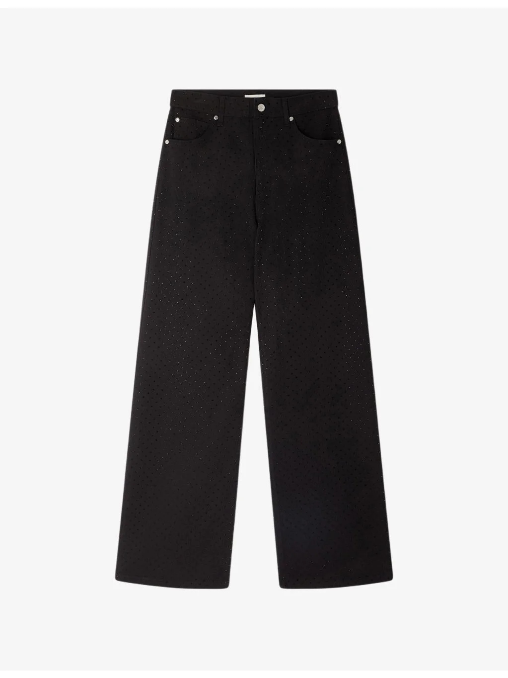 PRODUCT DETAILS - Sandro jeans - 100% cotton - Button and zip-fly fastening - Regular fit, mid rise, belt loops, five pockets, all-over rhinestone embellishment, wide leg - Machine wash at 30°C - True to size - Model is 5ft 8in /1.73m and wears a size 8 - Midweight, non-stretch Ref: R04511929