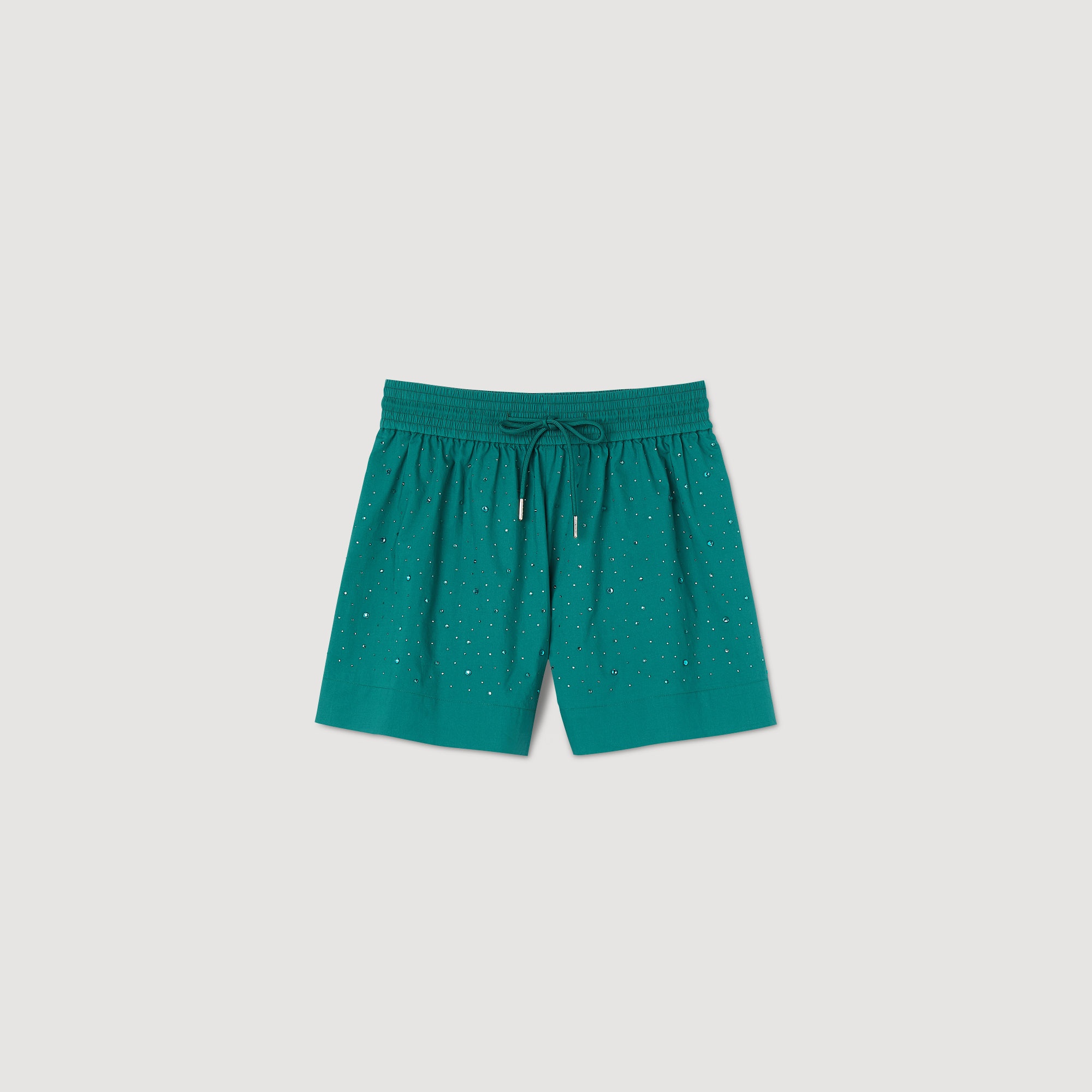 The cotton in this item was produced organically via a cultivation method that preserves biodiversity and bans the use of pesticides and GMOs. The model is 5'11" tall and wears a size 36 FR / 4 US Reference : SFPSH00344 MATERIALS Main fabric: 100% cotton Diamante: 100% glass Lining: 100% cotton