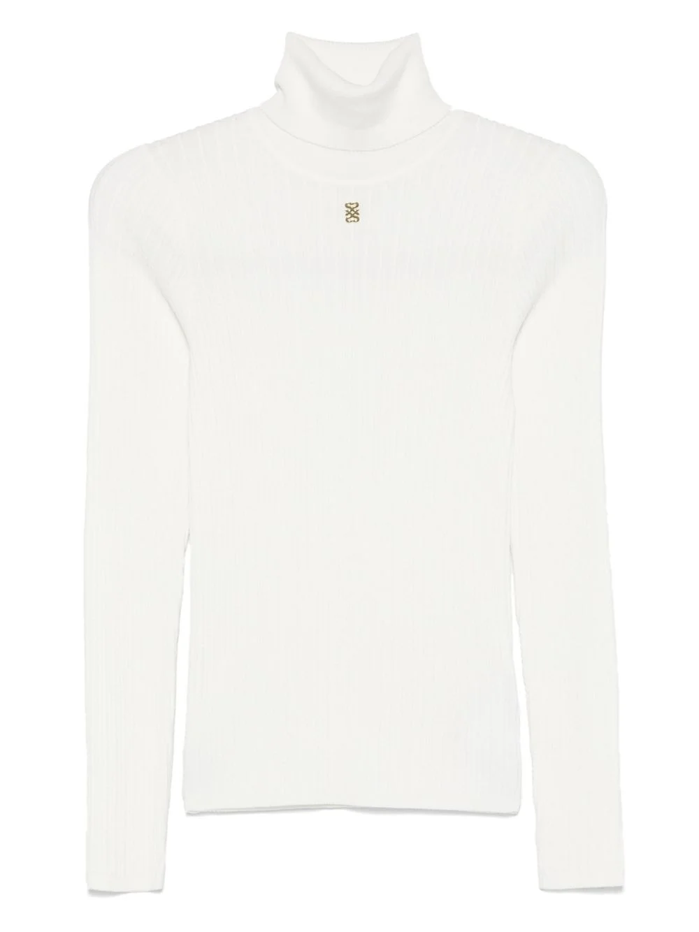 ribbed-knit jumper Highlights - White - Gold-tone logo plaque - Ribbed trim - Roll neck - Long sleeves Imported Composition Lyocell 63%, Wool 24%, Polyamide 13% SIZE & FIT Model measurements Height 5 ft 9 in(1.75 m) Bust/Chest 32.67 in(83 cm) Hips 36.22 in(92 cm) Waist 24.8 in(63 cm) FittingInformation Designed for a slim fit that sits just away from the body offering a close yet comfortable fit Made with a lightweight knit, this piece offers some stretch