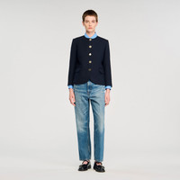 Reference: SFPVE01208_44 COMPOSITION & CARE Composition - Main material: 65% polyester, 35% viscose - Lining: 100% viscose - Pocket lining: 100% cotton Care advice - Do not wash - Do not bleach - Do not tumble dry - Iron at a maximum temperature of 110°C without steam - F/ - Professional dry clean, with hydrocarbon solvent, gentle treatment