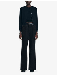 PRODUCT DETAILS - Sandro wool and cashmere cardigan - 90% wool, 10% cashmere - Button fastening - Regular fit, round neck, long sleeves, ruffle cuffs - Hand wash - True to size - Midweight, slight stretch Ref: R04326679
