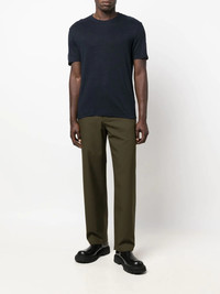 round-neck linen T-shirt Highlights - Marine blue - Linen - Round neck - Short sleeves - Straight hem - When buying this unisex item, keep in mind that it is graded in standard men's sizing. Imported Composition Linen/Flax 100% SIZE & FIT Model measurements Height 6 ft 0 in(1.84 m) Bust/Chest 35.82 in(91 cm) Hips 37 in(94 cm) Waist 28.34 in(72 cm) FittingInformation This piece fits true to size. We recommend you get your regular size Cut for a relaxed fit Made with a mid-weight fabric Washing instructions Hand Wash
