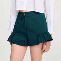 Flared shorts with ruffles, featuring belt loops and a front zip fastening. - Sandro Women's ruffled shorts - Belt loops - Front zip fastening - Mid-rise waist - Designed for a flared fit Reference: SFPSH00536_100 COMPOSITION & CARE Composition - Main material: 100% cotton Care advice - Gentle cycle 30° - Do not bleach - Do not tumble dry - Iron at a maximum temperature of 110°C without steam - F/ - Professional dry clean, with hydrocarbon solvent, gentle treatment