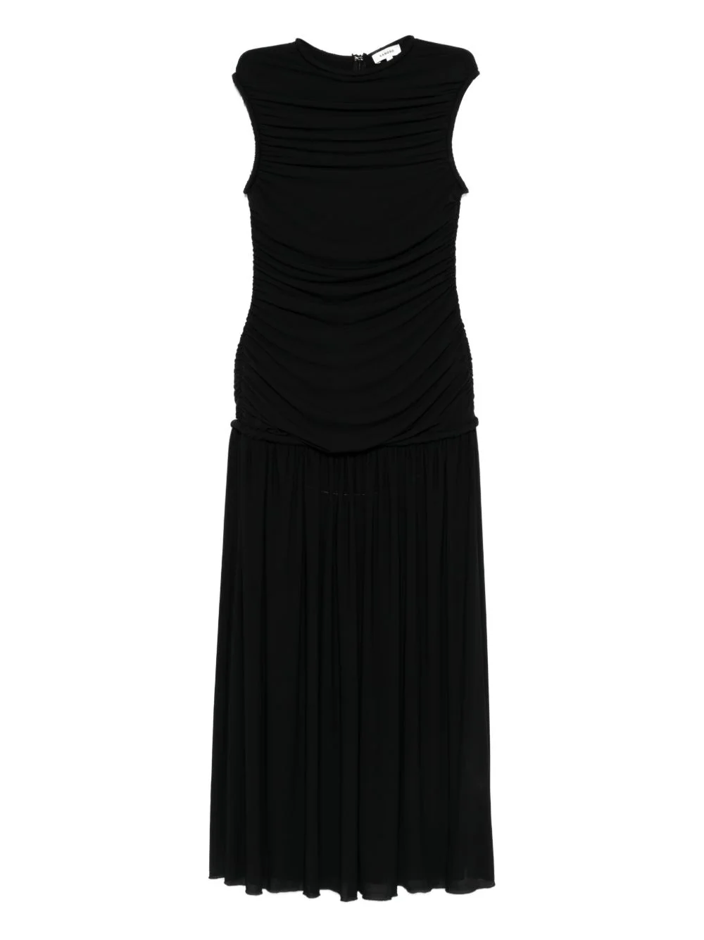 ruched dress Highlights - Black - Ruched detailing - Round neck - Sleeveless - Maxi length Imported Composition Polyester 92%, Lycra 8% Washing instructions Read Manufacturer Guidelines