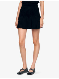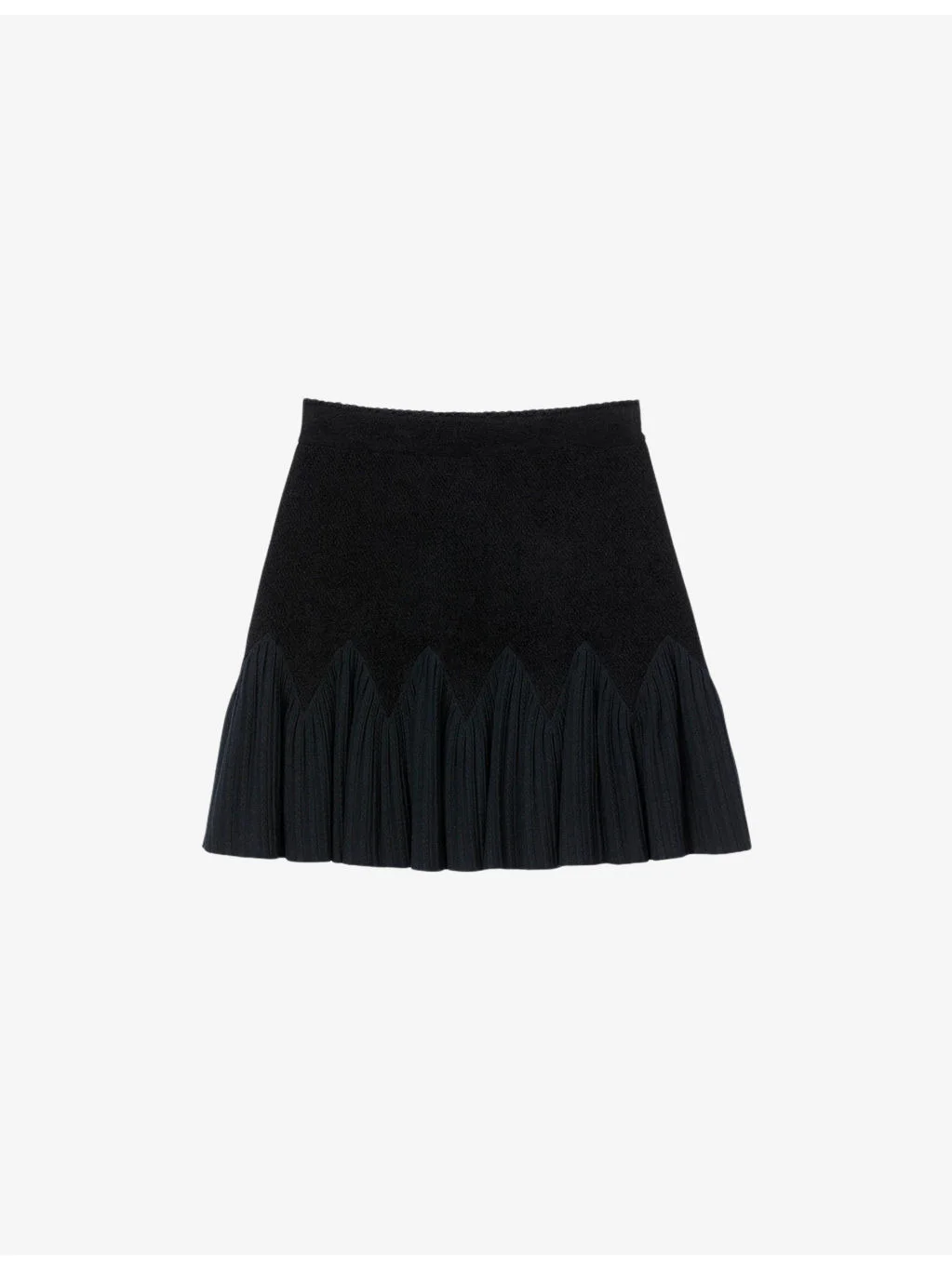PRODUCT DETAILS - Sandro stretch-knit skirt - 57% polyamide, 39% viscose, 3% polyester, 1% elastane - Slim fit, high rise, contrasting ruffles at the hem - Hand wash - True to size - Model is 5ft 9in/1.75m and wears a size UK 8 - Midweight, slight-stretch Ref: R04501231