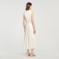 Maxi, flowy satin-effect dress with a crossover neckline and openwork adorned with a rhinestone trim. - Sandro Women's maxi satin-effect dress - Crossover neckline with rhinestone trim - Cut-out at the neckline - Sleeveless - Back zip fastening - Lined - Designed for a loose fit Reference: SFPRO04368_11 COMPOSITION & CARE Composition - Main material: 100% viscose - Lining: 100% polyester Care advice - Do not wash - Do not bleach - Do not tumble dry - Iron at a maximum temperature of 110°C without steam - F/ - Professional dry clean, with hydrocarbon solvent, gentle treatment