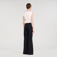 Straight-leg suit trousers with a slightly flared hem and a contrasting satin stripe on the side. - Sandro Women's suit trousers - Contrasting satin stripe on the side - Side zip fastening - High waist - True to size Reference: SFPPA01530_20 COMPOSITION & CARE Composition - Main material: 70% wool, 30% polyester Care advice - Do not wash - Do not bleach - Do not tumble dry - Iron at a maximum temperature of 110°C without steam - F/ - Professional dry clean, with hydrocarbon solvent, gentle treatment