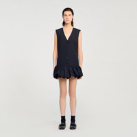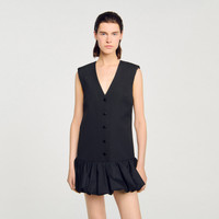 Sleeveless mini dress with a V-neckline, button fastening and a ruffled skirt. - Sandro Women's minidress - Crossover V-neckline - Shoulder pads - Button fastening - Ruffled skirt - Straight cut - True to size Reference: SFPRO04370_20 COMPOSITION & CARE Composition - Lining: 100% cotton - Main lower material: 66% polyester, 26% polyamide, 8% elastane - Main upper material: 100% viscose Care advice - Do not wash - Do not bleach - Do not tumble dry - Iron at a maximum temperature of 110°C without steam - F/ - Professional dry clean, with hydrocarbon solvent, gentle treatment