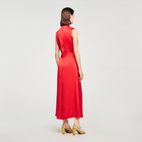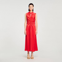Sleeveless satin-effect dress with a curved teardrop neckline and ruching on the front. - Sandro Women's sleeveless dress - Round neck with teardrop opening - Sleeveless - Ruched effect - Flared skirt - Length is approx. 52 in, based on size FR 36 / US 4 - Designed for a loose fit Reference: SFPRO03990_30 COMPOSITION & CARE Composition - Main material: 100% polyester Care advice - Do not wash - Do not bleach - Do not tumble dry - Iron at a maximum temperature of 110°C without steam - F/ - Professional dry clean, with hydrocarbon solvent, gentle treatment
