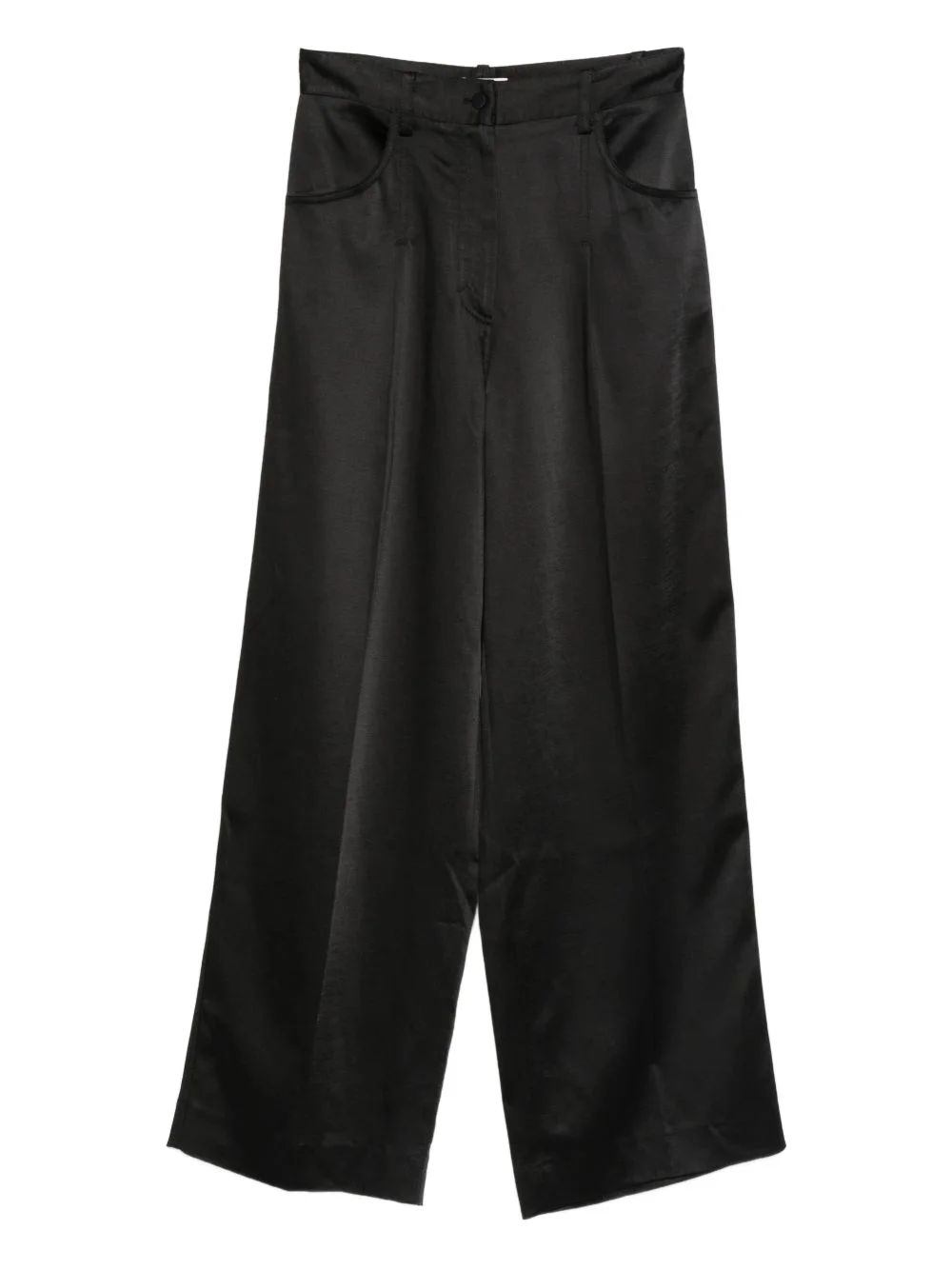 satin trousers Highlights - Black - Satin finish - Button fastening - Belt loops Imported Composition Outer: Viscose 60%, Linen/Flax 26%, Polyester 14% Lining: Polyester 100%, Cotton 100% SIZE & FIT Model measurements Height 5 ft 10 in(1.78 m) Bust/Chest 33.46 in(85 cm) Hips 36.22 in(92 cm) Waist 23.22 in(59 cm) Washing instructions Specialist Cleaning