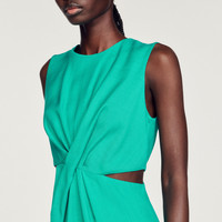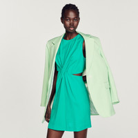 Short sleeveless dress with a round neck, side cut-outs and draping on the front. • Sandro Women's short draped dress • Side cut-outs • Round neck • Sleeveless • Draping • Fitted cut • Straight skirt • Back zip fastening Model is wearing a size 36/UK 8/US 2-4 and measures 179 cm Reference : SFPRO02321 MATERIALS Main fabric: 100% viscose