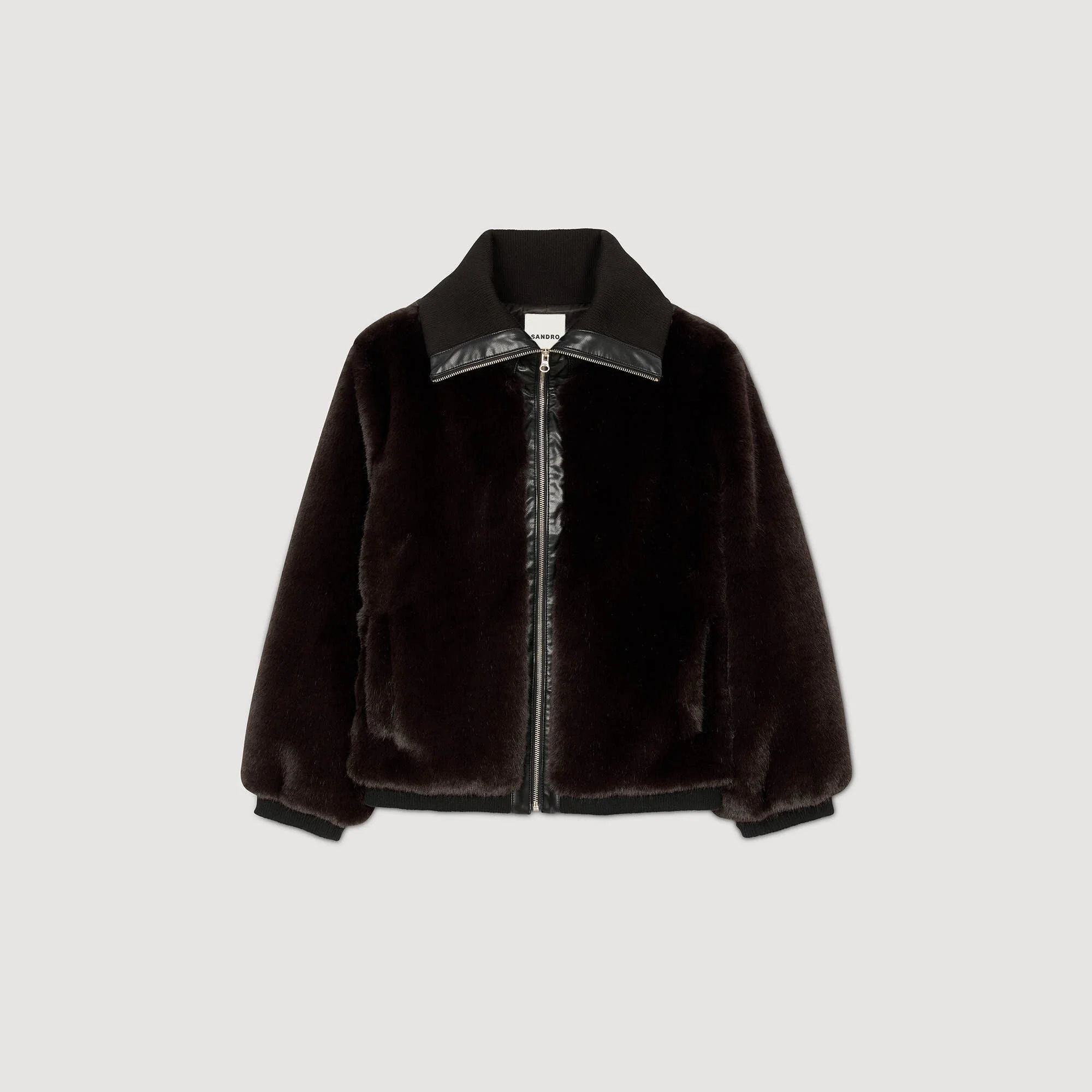Reference: SFPOU00773_G023 COMPOSITION & CARE Composition - Main material: 100% polyester - Lining: 55% polyester, 45% viscose - Secondary material: 100% polyester - Rib: 97% polyester, 3% elastane Care advice - Do not wash - Do not bleach - Do not tumble dry - Do not iron - F/ - Professional dry clean, with hydrocarbon solvent, gentle treatment
