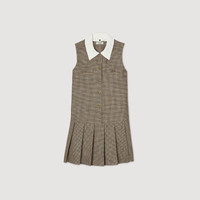 Short, sleeveless dress with micro houndstooth pattern, removable contrasting shirt collar, button fastening and pleated skirt. Sandro Women's short dress Micro houndstooth motif Removable shirt collar Metal buttons Pleated skirt Sleeveless Mock welt pockets with buttons The model is 177 cm / 5'9 tall and wears a size 36 FR / 4 US COMPOSITION Main fabric: 62% viscose, 35% polyester, 3% elastane Lining: 100% polyester Secondary fabric: 100% viscose Reference: SFPRO03868_G023